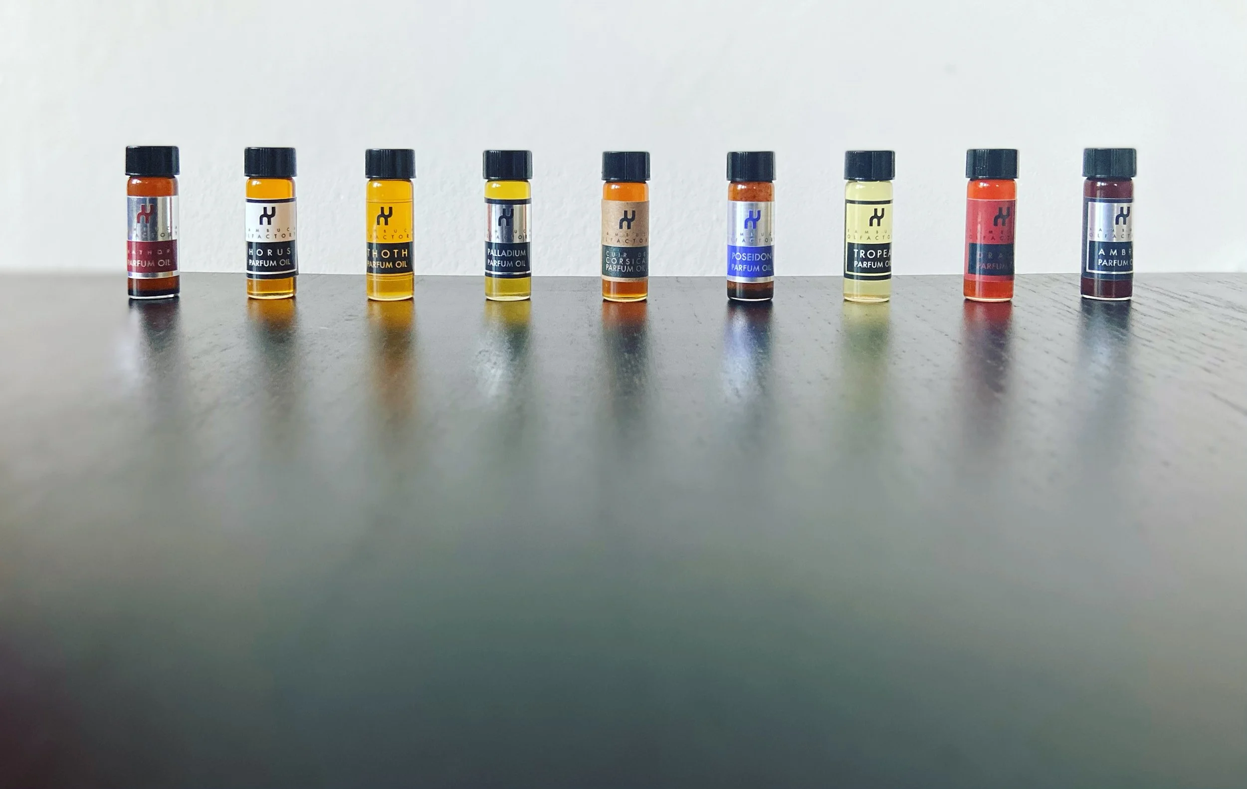 Since my first encounter with perfume in my youth, I was instantly drawn to the compact aspect perfume had though it resided in a small container while holding immense potency, silage and longevity. To honor this compact potency, my first iteration of parfum oils come in 1 dram sizes and are alcohol free. A series I intend to continue while still exploring other sizes, possibilities and spray perfumes in the future. As well as delving deeper into manufacturing incense and other products that appeal to the olfactory senses.